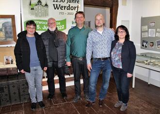 Im Heimatmuseum der Stadt Aßlar im Schloss zu Werdorf wurde am Sonntag eine neue Sonderausstellung mit dem Titel "Bilderansichten von der 1250-Jahrfeier" eröffnet. "Diese Ausstellung ist ein Dankeschön an alle, die unser Dorfjubiläum zu einem wunderbaren Erlebnis gemacht haben, an das sich alle Beteiligten noch lange gerne erinnern werden", so der 1. Vorsitzende des Vereins für Heimatgeschichte, Alexander Kleber, zu den zahlreichen Besuchern. "Wir haben die schönsten Momente zusammen gestellt und danken auch der Stadt Aßlar und der Bürgerstiftung für ihre tatkräftige Unterstützung." Erste Gedanken hatte es bei der Erstellung des Terminflyers gegeben. "Als wir bei der Jahresanfangsfeier mit dem QR-Code-Rundgang zu historischen Gebäuden als Geschenk an die Dorfgemeinschaft präsentiert haben, fiel der Entschluss, das Fest noch einmal Revue passieren zu lassen", erläuterte Claudia Duchscherer, deren Idee es war, nicht nur einfach Fotos an die Wand zu hängen, sondern ein Konzept zu erarbeiten. Durch einen Aufruf auf allen möglichen Wegen kamen 579 Aufnahmen zusammen, aus denen schlussendlich 170 ausgewählt wurden und jetzt auf zwölf Tafeln einen sehr lebendigen Eindruck von der Vielfalt des Fest-Geschehens präsentieren. Von der Ideensammlung, über die Bildung von Orga-Teams für Festschrift, Planung, Dorfverschönerung, bis hin zu vielen Stunden in Arbeitseinsätzen und schlussendlich dem Aufbau der Bühnen, Technik, Bewirtung oder Marktstände - alles ist fotografisch festgehalten und auch mit Erläuterungen versehen. Ob der überquellende Hefeteig des Obst- und Gartenbauvereins im Backhaus, die Klemmkuchen der Freunde aus Jüterbog, die Fanfarenbläser und die Gewandgruppe, die durch das Dorf zogen, um die Einwohner zum Fest zu rufen, oder die Gemütlichkeit im Weindorf - alles ist zu sehen und spontan fällt beim Anschauen auch die ein oder andere Anekdote ein. Wie zum Beispiel, als dem Ortsdiener seine Schelle fehlte und Sebastian Neubauer nach dem Handy-Hilferuf der historisch Gewandeten das Gewünschte einfach per Gabelstapler ans andere Ende des Ortes brachte. Überall und jederzeit gab es eine rasche Lösung auch für kleinste Problemchen, damit alles einfach rund lief. Jeder Besucher konnte spüren, dass alle mit ganzem Herzen dabei waren. "Man kann alles noch einmal entdecken und genießen", freut sich Duchscherer. Dazu gibt es noch drei Filme zu den beiden Dorfjubiläen und dem QR-Code, in einer Vitrine gibt es vom Getränkebecher über das Fest-Shirt bis zu speziellen Hoingker-Karten und, und, und… eine Menge zu sehen. Und am Ende kann jeder noch bei einem Quiz beantworten, wie viele Bleche Kuchen gebacken wurden, wie viele Besucher das Museum beim Fest hatte, wie viel Kilo Bonbons im Tante Emma-Laden verkauft wurden und Vieles mehr. "Die Bilderausstellung ist noch erweiterbar und wer noch Fotos hat, kann sie uns gerne zukommen lassen", so Alexander Kleber zum Abschluss. Das Heimatmuseum im Schloss ist übrigens an jedem 2. und 4. Sonntag eines Monats von 14 bis 18 Uhr und nach Vereinbarung bei freiem Eintritt geöffnet. Auf der Homepage www.heimatverein-werdorf.de kann man jederzeit auch einen virtuellen Rundgang machen und sich über die vielfältige Arbeit des Vereins für Heimatgeschichte Werdorf informieren.