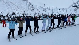 Beste Schneeverhältnisse, strahlender Sonnenschein und eine tolle Stimmung - so begann die diesjährige Schul-Skifreizeit für 44 Schüler der Johannes-Gutenberg-Schule in Tirol. Schon bei der Ankunft in den Alpen war die Vorfreude groß, denn eine Woche lang tauschten die Kursteilnehmer das Klassenzimmer gegen die Skipiste. Zusammen mit ihren Lehrkräften Bastian Bretfeld, Michael Guht, Dominik Stauber, Jochen Tessmer und Lehramtsstudentin Louisa Bothe wurde eine Woche lang im 600 Kilometer entfernten Skigebiet von Nauders gewedelt und wurden Schwünge geübt. Nach dem Beziehen der Hotelzimmer in Pfunds konnten sich die Schüler im Schwimmbad noch ein wenig entspannen, bevor es dann am nächsten Morgen direkt nach dem Frühstück hinauf nach Nauders ins Skigebiet ging. Während die 21 Anfänger das Skilaufen in Kleingruppen von ihren erfahrenden Lehrkräften am Förderband und Tellerlift im Tal schnell erlernten und am Ende der Woche souverän die leicht befahrbaren Pisten bewältigten, konnten sich die restlichen Schüler schon mit der Gondel auf einen 2000er begeben. Die Könner erkundeten das Skigebiet von oben bis unten und nutzten jeden Pistenkilometer Zentimeter für Zentimeter aus, wobei sie auch vor den anspruchsvollsten Pisten keinen Halt machten. Und wer es mit den Pistenregeln nicht so genau nahm, bekam eine wunderbar gestaltete Warnweste als Kennzeichen für die „Pistensau“ des Tages verliehen.