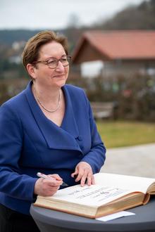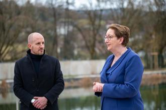 Bürgermeister Dominik Brasch begrüßte die Bundesministerin herzlich und brachte die Freude darüber zum Ausdruck, dass sie den Bescheid persönlich übergeben hat. "Es ist eine große Ehre und eine Würdigung der bisher erbrachten Leistungen, dass Ministerin Geywitz extra aus Berlin nach Mernes gekommen ist" so Brasch. In ihrer Rede unterstrich die Bundesministerin die zentrale Rolle der Schwimmbäder in Deutschland, insbesondere für das Schwimmenlernen von Kindern und als wichtige Freizeitangebote für alle Generationen. Nachdem Geywitz sich noch ins Goldene Buch der Stadt eingetragen hatte, nutzte sie die Gelegenheit, sich mit den anwesenden Gästen auszutauschen und besichtigte unter anderem die Wassertretanlage sowie den durch Spessart Regional geförderten Wasserspielplatz in Mernes.