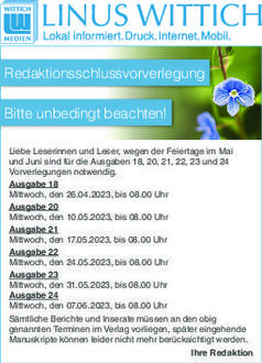 Vorheriger Artikel: Gottesdienstzeiten St. Peter, Mernes