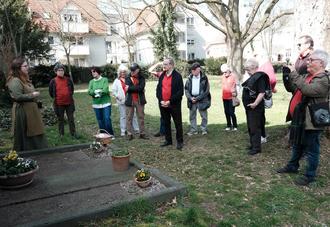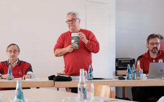 Günter Rost hat einen ganz anderen Wunsch. Der Wanderfreund ist Vorsitzender der „Wanderfreunde Großauheim“ und Gastgeber der diesjährigen Tagung. Die aktiven Mitglieder der Ortsgruppe, alle im traditionellen roten Spessartbund-Shirt, servierten eifrig Kuchen, Kaffee und andere Getränke. Für ihre Gäste hatten sie sich etwas ganz Besonderes ausgedacht: eine historische Führung zur nahegelegenen Ruhestätte von Dr. Karl Kihn, einem Mitgründer des Spessartbundes.
