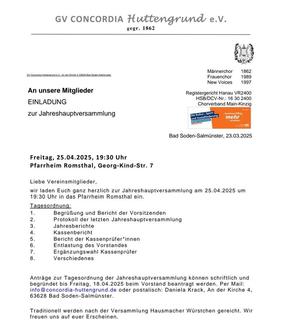 Gesangverein Concordia Romsthal - Einladung zur Jahreshauptversammlung 2025