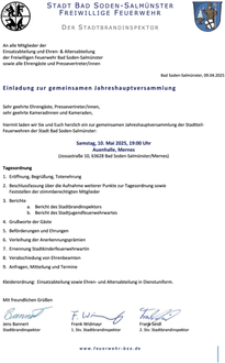 hiermit laden wir Sie und Euch herzlich ein zur gemeinsamen Jahreshauptversammlung der Stadtteil-Feuerwehren der Stadt Bad Soden-Salmünster: