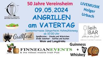 Sie haben am Vatertag noch nichts vor und keine Lust daheim in der Küche zu stehen? Sie mögen gute Unterhaltung? Dann haben wir genau das Richtige für Sie. Für aufmerksame Leserinnen und Leser dieses Blättchens ist es keine Neuigkeit, wurde doch in den letzten Ausgaben schon mehrfach darüber berichtet. Für diese nur noch mal zur Erinnerung, für alle anderen als brandneuer Hinweis: Der Liederkranz veranstaltet auch in diesem Jahr wieder sein traditionelles Angrillen zum Vatertag im Sängerheim und auf der angrenzenden „Sonnenterrasse“ im Hohmühlenweg. Schirme und ein Zelt bieten denen, welche es nicht ganz so sonnig mögen, ein ausreichend schattiges Plätzchen.