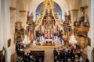 Am Weißen Sonntag, 16.04.2023 traten in der Pfarrkirche St. Peter und Paul Bad Soden-Salmünster 21 Kinder zum ersten Mal zum Tisch des Herrn. Zu Beginn des Gottesdienstes zogen die Kommunionkinder vom Joseph-Müller-Haus, gemeinsam mit den Messdienern und Pfr. Sippel in die Kirche ein. Musikalisch begleitet wurden sie hier von einer Spielgemeinschaft des Musikvereins Bad Soden und des Musikvereins Salmünster. Im Anschluss durften die Kinder ihren Glauben selbst bekennen, den zuvor bei der Taufe ihre Eltern und Paten für sie bekannt haben. Als Rückenstärkung für dieses Glaubensbekenntnis, standen ihre Paten direkt hinter ihnen.