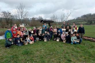 Grundschulkinder aus Oberndorf bauten im März Nistkästen, die sie dann mit nach Hause nehmen durften