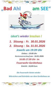 Kartenvorverkauf für beide Veranstaltungen ist am Sonntag, den 18.01.2026 von 16:00 bis 17:30 Uhr im Feuerwehr-Gerätehaus Ahl. Außerdem bietet die Feuerwehr wieder Würstchen und Getränke vor dem Gerätehaus an.