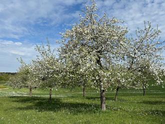 Die besondere Stimmung auf der Streuobstwiese in Kerbersdorf ergreift auch Klaus Eichenauer, den 1. Vorsitzenden, wenn er hier steht. Bei ursprünglicher Stille hat man einen weiten Blick über das Land. Verschiedene Tiere finden hier eine Heimat und es wachsen eine Vielzahl von Wiesenblumen in unterschiedlichsten Farben, sogar wilde Orchideen.