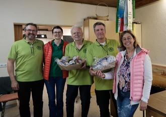 Nach vielen Jahren verabschiedeten sich Manfred Kremer (Mitte) und Jörg Schielke (2.v.r) aus dem Vorstand. Der Vorsitzende Timo Kihn (links) überreichte mit seiner neuen Stellvertreterin Birgit Bergmann (2.v.l.) und der neuen Kassiererin Nadine Jauch Präsentkörbe