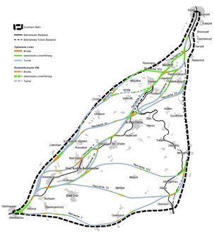 Die Bahn favorisiert weiter die Variante IV. Die im Raumordnungsverfahren vorgeschlagene Alternativvariante aus V und VI wurde aus Sicht der Bürgermeister durch das Regierungspräsidium nicht ausreichend geprüft.