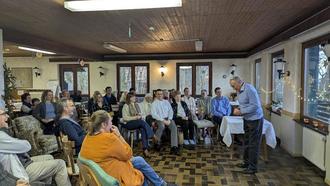 Landrat a.D. Karl Eyerkaufer, der zusammen mit seiner Ehefrau Marion Eyerkaufer am Programm teilnahm, erzählte in seinem Grußwort von seinen Begegnungen mit buddhistischen Mönchen im Rahmen seiner zahlreichen Besuche für sein Wohltätigkeitsprojekt in Beruwala, Sri Lanka. Ihm selbst liege die Meditation zwar nicht, aber durch seine Frau, die regelmäßig Meditation praktiziere, profitiere er durch deren Ausgeglichenheit und Ruhe.