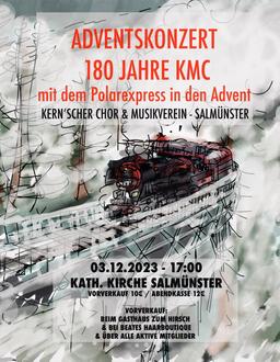 Zusammen mit dem Musikverein 1921 Salmünster e.V. werden die Chöre am Sonntag, 3. Dezember 2023 ein großes Adventskonzert in der Kirche St. Peter und Paul präsentieren. Umrahmt von adventlichen Liedern bildet der Soundtrack des Weihnachtsfilms „Der Polarexpress“, der aus mehreren Musikstücken besteht und von den Kern´schen Chören zusammen mit dem Musikverein vorgetragen wird, den Höhepunkt dieses Konzertes.