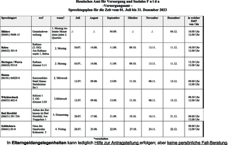 Sprechtagsplan für die Zeit vom 01. Juli bis 31. Dezember 2023
