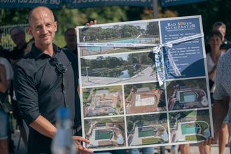 Bürgermeister Brasch fügte hinzu: „Der Erfolg dieses Projekts zeigt, dass wir als Stadt den richtigen Weg eingeschlagen haben. Das beispielgebende Engagement der Merneser für ihr Bad, kann Ansporn für weitere Projekte sein und auch für unser seit einigen Jahren geschlossenes Freibad in Bad Soden als Vorbild dienen. Vor Ort versteht man die Balance zwischen bürgerlichen Rechten und Pflichten. Ihr fordert viel, aber ihr leistet auch viel“, lobte der Rathauschef die anwesenden Merneser Bürger und übergab zwei große Fotodokumentationen der Baumaßnahme und des neuen Bades an Jürgen Kröckel und Thorsten Desch, die für die ehrenamtlichen Bauhelfer stellvertretend mit viel Lob und Dankesworten überhäuft wurden.