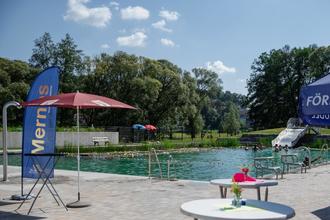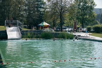 Gesamtansicht auf das Becken im Naturbad Mernes