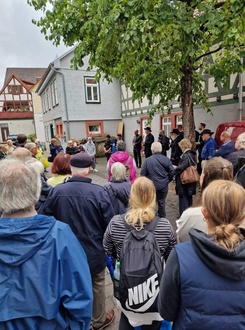 Gerhard Gerstner nahm als Enkel von Karoline Dressel mit seiner Frau Cornelia an der Feierstunde teil. „Heute steht Karolines Foto auf unserer Kommode, und sie wird jeden Tag angeschaut und geehrt. Wenn sie wüsste, welch’ große Familie sie hat; wir denken, dass es sie sehr freuen würde.“ Die Würdigung ihrer Großmutter ist in der Broschüre der Projektgruppe Stolpersteine Altstadt Salmünster enthalten.