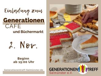 wir laden euch herzlich zu unserem Abschlusscafé am 02. November 2024 im Generationencafé Salmünster ein! Lasst uns gemeinsam bei Kaffee und Kuchen das Jahr Revue passieren und einen schönen Nachmittag in gemütlicher Runde verbringen.