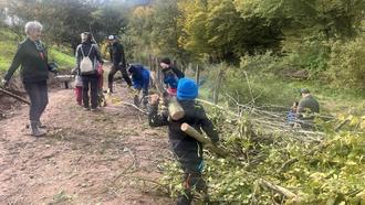 In einem Biotop in Jossa sägten und schnitten die jungen Naturschützer dickere Zweige und Äste, legten Totholzhaufen an und bauten mit weiterem Reisig und viel Kreativität eine so genannte „Benjeshecke“. Dafür wurden mehrere Holzpfeiler in zwei Reihen in den Boden gesetzt und dazwischen das Schnittgut in Form einer kompakten Hecke aufgeschichtet. „Die Kinder erfuhren auch für welche Tiere so eine Hecke nützlich ist: hier wohnen Vögel, z.B. Amsel und Neuntöter, aber auch Eidechsen, Erdkröten und Igel ziehen ein“ informierte Ritsch Euler, der die Naturschutzjugend (NAJU) betreut. „Wenn die Benjeshecke sich entwickelt, können dort durch Samen, die von Vögeln mitgebracht werden, auch Sträucher und kleine Bäume wachsen, die mit ihren Früchten auch wieder Nahrung bieten.“