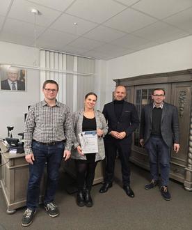Nach bestandener Prüfung ließ es sich Bürgermeister Dominik Brasch nicht nehmen, die Bestellungsurkunde zur Standesbeamtin an Frau Julia Ziegler persönlich zu übergeben. Zusammen mit Haupt- und Personalamtsleiter Tim Schneider sowie dem Leiter des Fachbereiches Öffentliche Sicherheit und Ordnung, Christian Buhl gratulierte er Frau Julia Ziegler ebenfalls zum erfolgreichen Abschluss des Standesamtslehrgangs.
