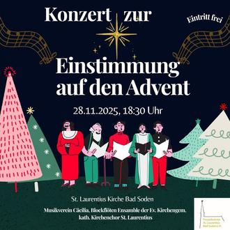 Am 28.11.2025 um 18:30 Uhr lädt der Freundeskreis St. Laurentius alle Interessierten zu einem Konzert zur Einstimmung auf den Advent in die St. Laurentiuskirche Bad Soden ein.