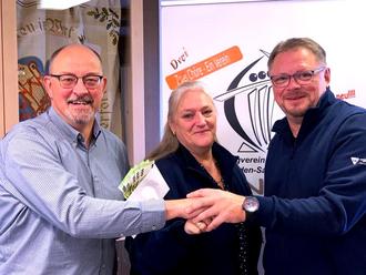 Michael Panster (rechts im Bild) überreicht seine Spende Armin Leipold und Monika Herrscher