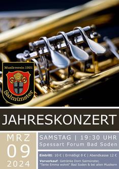 Am Samstag, 09.03.24 lädt der MV 1921 Salmünster zu seinem Jahreskonzert ein.