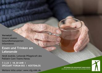 „Wir können sie doch nicht verhungern lassen.“ Angehörige, die Patienten in der letzten Lebensphase begleiten, kämpfen oft mit Hilflosigkeit angesichts der Verweigerung von Nahrung. Darum geht es beim Vortrag am 7. März um 18.30 Uhr im Spessart FORUM mit Heidi Andrée, Leitende Pflegekraft des Palliativ Care Team Hanau.