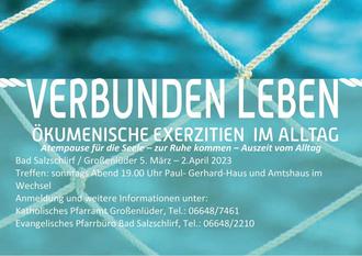 | 19.00- 20.00 Uhr | Ökumenische Exerzitien im Alltag, unter der Leitung von Pfr. Grimm und Pfr. Hartel, Amtshaus, Großenlüder |