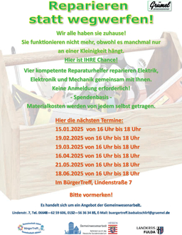 Lindenstr. 7, Tel. 06648—62 59 606, 0152—56 36 34 85, E-Mail: buergertreff.badsalzschlirf@gruemel.de