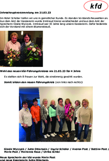 Neue Sprecherin der kfd wurde Maria Post und neue Kassiererin Jutta Otterbein.