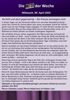 | 15.00 Uhr | Hzl | Liturgie vom Leiden und Sterben unseres Herrn Jesus Christus | |