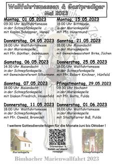 Gottesdienstordnung vom 12. Mai - 21. Mai 2023