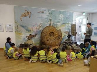 Neu für die Kinder waren die großen Fossilien, die ebenfalls Teil der Ausstellung sind. Beeindruckend war für alle, dass diese teilweise sehr groß sind und Schnecken und anderen heutigen Lebewesen ähneln.