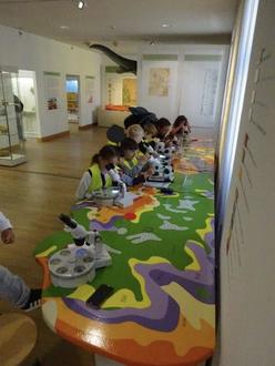 Kleinere Fossilien konnten die Kinder mit Hilfe von Mikroskopen betrachten.