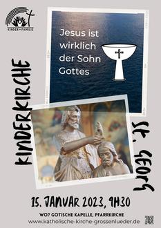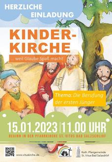 Alle Kinder ab 4 Jahren sind herzlich zur Kinderkirche am So. 15.01.2023 nach St. Vitus eingeladen. Beginnen werden wir um 11 Uhr in der Kirche und gehen dann gemeinsam ins Pfarrheim, um auf kindgerechte Art und Weise in biblische Geschichten einzutauchen. Das Kinderkirchenteam freut sich auf euch.