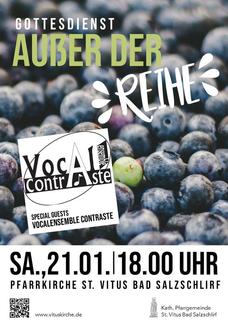 | 18.00 Uhr | Gottesdienst „Außer der Reihe“ mit Vocalensemble Contraste |