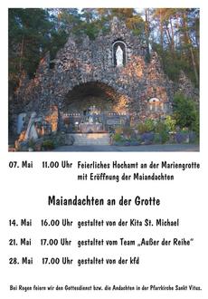 | 17.00 Uhr | Abschluss der Maiandachten an der Mariengrotte |