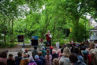 Zur Begrüßung der fast 300 Gäste eröffneten die Kita-Leiterin Maria Horn und Kristina Sauer, 1. Vorsitzende des Fördervereins, gemeinsam das Fest. Dabei dankten beide für die großartige Zusammenarbeit von Kita und Förderverein, den vielen engagierten Eltern und den Erzieherinnen, die sich täglich für die Kinder einsetzen. Auch die ehemaligen Vorstandsmitglieder des Fördervereins wurden bedacht und Rosen an sie verteilt. Kristina Sauer bedankte sich zudem bei der Bäckerei Grenz, die bei den vom Förderverein organisierten Kinderkleiderbasaren den Waffelteig spendet und dankte ihren Eltern, die bei der Umsetzung der verschiedenen Projekte tatkräftig unterstützen. Ganz besonders bedankte sich Kristina Sauer bei Lydia Lachmann die anlässlich des Jubiläums eine Geschichte über die Maskottchen Gisbert Grashüpfer vom Förderverein und den heiligen St. Michael von der Kita geschrieben und diese den Kindern vorgelesen hat. Auch an Silke Post sprach Kristina Sauer einen besonderen Dank aus, da diese über all die Jahre immer wieder neue Illustrationen von Gisbert Grashüpfer angefertigt hat. Im Anschluss stimmten einige Mütter ein umgedichtetes Lied an, um den Erzieherinnen danke zu sagen.