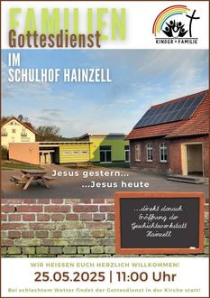 | 11.00 Uhr | Hzl | Familiengottesdienst, bei schönem Wetter im Schulhof |