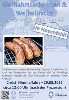 | 09:15 Uhr | Kll | Prozession zur Grotte anschl. Festamt zum Hochfest Christi Himmelfahrt |