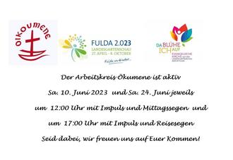 | 18 Uhr | Ökum. Andacht „Über die Dörfer“, E. Kirche im Kurpark, Bad Salzschlirf |