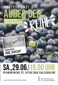 | 19.00 Uhr | Gottesdienst „Außer der Reihe“ mit dem Chor „EMOTION“ |