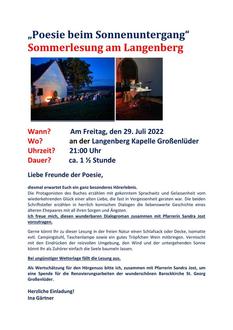 | 21.00 Uhr | LK | Poesie zum Sonnenuntergang an der Langenbergkapelle |