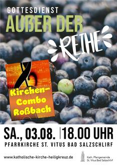 | 18.00 Uhr | Gottesdienst „Außer der Reihe“ mit der Gruppe Kirchen-Combo Roßbach |
