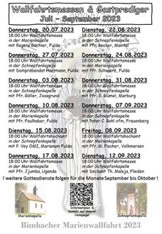 | 19.00 Uhr | Slk | Festgottesdienst mit Kräuterweihe an der Schlingenkapelle |