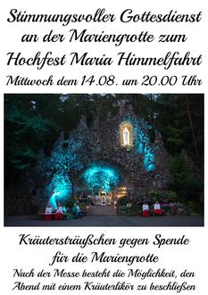 | 20.00 Uhr | BSa | Stimmungsvolle Vorabendmesse zum Hochfest Maria Himmelfahrt |