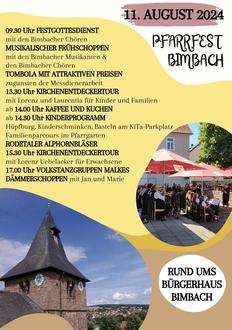 | 09.30 Uhr | Bim | Festmesse anl. Patrozinium Hl. Laurentius und anschl. Pfarrfest |