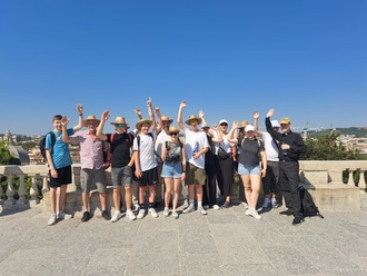 Jedoch endet auch die schönste Reise eines Tages und so wurden am Freitagmorgen die Koffer wieder gepackt und in den Bus verschafft. Der Freitagvormittag konnte dann noch einmal genutzt werden, um Souvenirs und Postkarten für die Lieben daheim zu erwerben. Einige mutige aus der Gruppe mieteten sich E-Bikes und E-Scooter, um Rom noch einmal von „oben“ zu sehen. Ein idealer Aussichtspunkt auf die Stadt ist hierfür der Hügel Gianicolo. Nach einer letzten leckeren Pizza und der Abschlussmesse in San Gregorio VII., wurden die Stammplätze in der letzten Reihe im Bus wieder eingenommen, die Musik angeworfen und fröhlich sich auf den Weg nachhause gemacht.