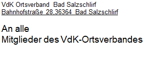 der Vorstand des Ortsverbandes erinnert an die am Samstag, den 16.09.2021 stattfindenden Jahreshauptversammlungen.