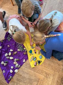 Nach der Erzählung durften die Kinder als Aktion Mutsteine bemalen. Es entstanden zahlreiche bunte Steine mit vielfältigen Mustern.